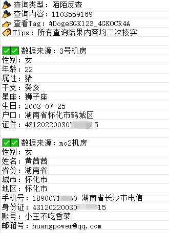 查询信息只限你本人阅读,不得在网络上传播!